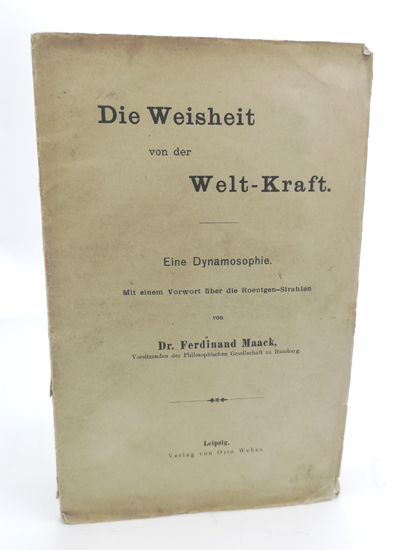 Maack, Dr. Ferdinand: Die Weisheit von der Welt-Kraft. Eine Dynamosophie. Mit einem Vorwort über die Roentgen-Strahlen. Verlag von Otto Weber, Leipzig 1897. 2 Bl., 67 S. OKarton.