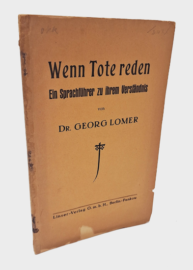 Lomer, Dr. Georg [Heinrich]: Wenn Tote reden. Ein Sprachführer zu ihrem Verständnis. Linser-Verlag, Berlin-Pankow 1924. 46 S., 1 Bl. Vlgs.-Anz. OBroschur.