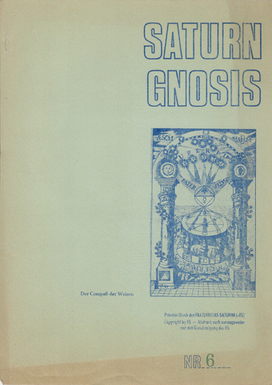 Fraternitas Saturni Hrsg.): Saturn Gnosis. Nr. 6. Privater Druck der Fraternitas Saturni, o.O. u. o.J. [Frankfurt am Main / Neu Isenburg, ca. 1971]. 4°. 17 S. Loseblattwerk.