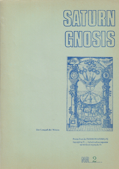 Fraternitas Saturni Hrsg.): Saturn Gnosis. Nr. 2. Privater Druck der Fraternitas Saturni, o.O. u. o.J. [Frankfurt am Main / Neu Isenburg, ca. 1970]. 4°. 32 S., 4 Bl. Loseblattwerk.