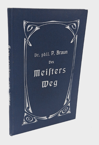 Braun, Dr. phil. P[eter]: Des Meisters Weg. Eine Darlegung des esoterischen oder geheimen Sinnes einer Anzahl Taten und Worte Christi, dessen Kenntnis uns befähigt, Ihm gleich zu werden: vollkommene Söhne und Töchter Gottes, Brüder und Schwestern des Meisters. Verlag von F[riedrich] E[duard] Baumann, Bitterfeld und Leipzig o.J. [1905]. 101, [1] S. OLwd. mit Deckelprägung im Jugendstil.