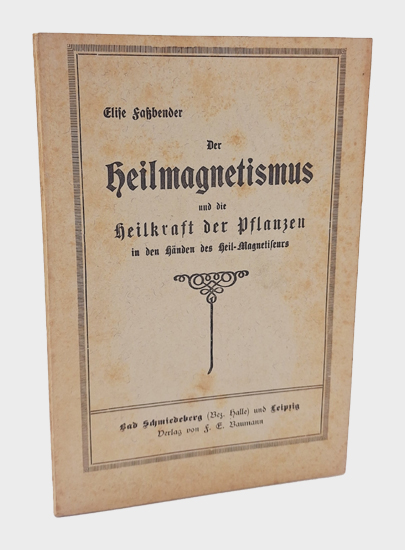Faßbender, Elise: Der Heilmagnetismus und die Heilkraft der Pflanzen in den Händen des Heil-Magnetiseurs. Verlag von F[riedrich] E[duard] Baumann, Schmiedeberg (Bez. Halle) und Leipzig o.J. [1912]. Zweite Auflage. 102, [1] S. OKarton.