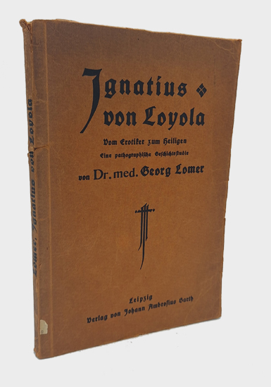 Lomer, Dr. med. Georg [Heinrich]: Ignatius von Loyola. Vom Erotiker zum Heiligen. Eine pathographische Geschichtsstudie. Verlag von Johann Ambrosius Barth, Leipzig 1913. Gr.-8°. Mit einem Bildnis. 2 Bl., 187 S., [1], 2 Bl. Vlgs.-Anz. OKarton.
