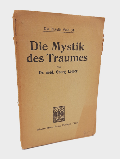 Lomer, Dr. med. Georg [Heinrich]: Die Mystik des Traumes und ihre wissenschafltichen Grundlagen. Johannes Baum Verlag, Pfullingen in Württ. 1921. 53, 3 S. Vlgs.-Anz. OKarton.