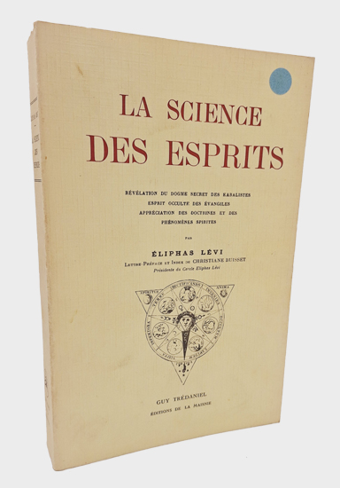 La Science des Esprits. Révélation du dogme secret des Kabalistes. Esprit occulte des Évangiles. Appréciation des doctrines et des phénomènes spirites par Éliphas Lévi. Lettre-préface et index de Christiane Buisset, Présidente du Cercle Eliphas Lévi. [Paris], Guy Trédaniel, Éditions de la Maisnie [1976]. XIII, [1], 537, [1] S. Cartonnage original illustré.
