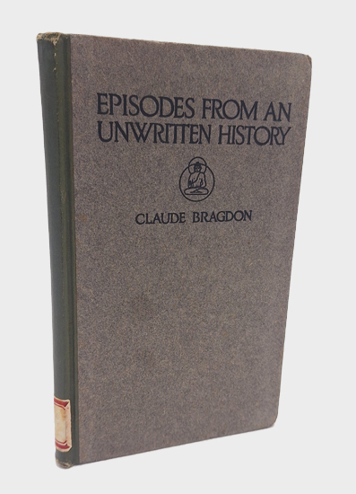 Bragdon, Claude: Episodes from an Unwritten History. The Manas Press, Rochester 1910. Kl.-8°. Second (enlarged) edition. 2 (w), 109, [1], 3 (w) S. Cardboard with cloth spine.
