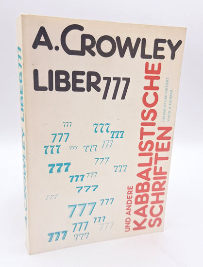 “Diese Sammlung kabbalistischer Texte ist in der Geschichte der magischen Literatur ohne Parallele. “777” ist ein vollständiges, magisches Wörterbuch. Es ist der Schlüssel zum praktischen Okkultismus und den großen Religionen. Die gesamte Fülle aller Korrespodenzen, Entsprechungen, Beziehungen und Querverbindungen ist hier übersichtlich tabellarisch aufgelistet. Zusätzlich erhält das Buch die wichtigsten kabbalistischen Texte Crowleys, die eine tiefe Einsicht in die Arbeit mit der Kabbala und mit der praktischen Magie bieten. Das hier enthaltene Sepher Sepiroth ist ein einmaliges Wörterbuch der Gematria mit wichtigen, nach ihrem numerischen Wert geordneten, hebräischen Wörtern.” [Vlgs.-Werbung]. – Umschlag minimal berieben. Erstes (w) Blatt mit Besitzvermerk, sonst sehr gutes Exemplar einer frühen Ausgabe.