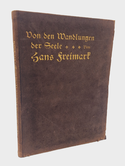 Freimark, Hans: Von den Wandlungen der Seele. Verlag von L. M. Waibel, Berlin-Friedenau 1913. Gr.-8°. 67 S, [1] w., 1 Bl., 1 (w). Original Wildleder-Band Mit Goldprägung.