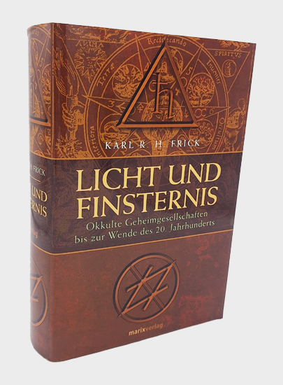 Frick, Karl R. H: Licht und Finsternis. Gnostisch-theosophische und freimaurerisch-okkulte Geheimgesellschaften bis zur Wende des 20. Jahrhunderts. Bd. 1 u. 2 (in 1 Bd.). Marix Verlag GmbH, Wiesbaden 2005. IX, 345; XII, 582 S., 1 Bl. OPappband mit Rückengoldprägung und OUmschlag.