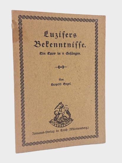 Engel, Leopold: Luzifers Bekenntnisse. Ein Epos in 8 Gesängen. Renatus-Verlag, Lorch 1928. 56 S. OKarton.
