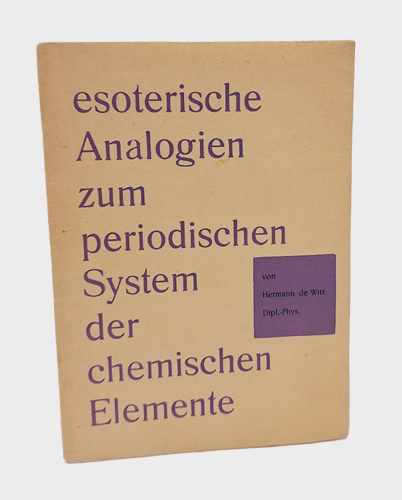 Witt, Hermann de: Esoterische Analogien zum periodischen System der chemischen Elemente. Verlag Psychosophische Gesellschaft, Thelema, Stein/App. (Schweiz) o.J. (um 1960). 12°. 27 S. OInterimsbroschur.