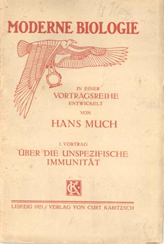 Much, Hans: Über die unspezifische Immunität. In einer Vortragsreihe entwickelt von Hans Much. (Professor an der Universität Hamburg). Leipzig 1921 (EA), Verlag von Curt Kabitzsch. 31 S., OKart.