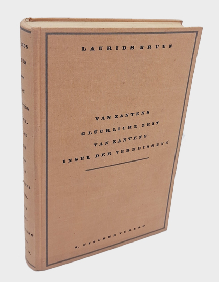Bruun, Laurids (Hrsg.): Van Zantens glückliche Zeit. Ein Liebesroman von der Insel Pelli und Van Zantens Insel der Verheißung. S. Fischer Verlag, Berlin 1933. 221. bis 230. Auflage. Berechtigte Übersetzung aus dem Dänischen von Julia Koppel. 1 (w), 1 Bl., 174 S., 1 Bl. OLwd.