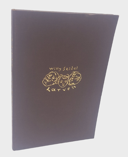 Seidel, Willy: Larven. Novelle. Albert Langen, München 1929. 4° [277 x 186 mm]. Mit 22 Zeichnungen von Alfred Kubin. 73, [1] S., 1 (w) Bl., 2 Bl. Vlgs.-Anz. OLwd. mit Goldprägung und OUmschlag.