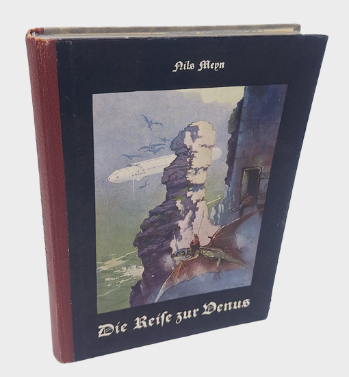 Meyn, Nils: Die Reise zur Venus. Phantastische Zukunftserzählung. Verlag Hans Friedrich Abshagen, Dresden o.J. [1930]. Aus dem Dänischen übertragen von Antje Hering. Bilder (farbig) von Karl Mühlmeister. 162 S., 1 Bl. Illustr. OHLwd.