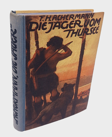 Achermann, F[ranz] H[einrich]: Die Jäger vom Thursee. Roman aus den Wildnissen der Steinzeit. Verlag Otto Walter, Olten und Konstanz 1918. 12. bis 16. Tausend. Den Einband zeichnete Willy Plank. 248 S. Illustr. OHLwd.