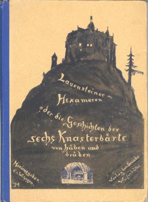 Lauensteiner Hexameron oder Die Geschichten der sechs Knasterbärte von hüben und drüben. Verlag der Freude, Wolfenbüttel 1924. 151 S., 2 Bl. Vlgs.-Anz. illustr. OHLwd.