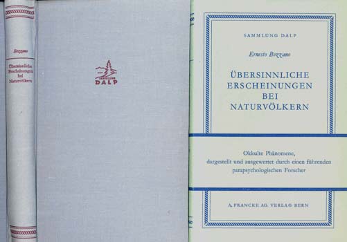 Bozzano, Ernesto: Übersinnliche Erscheinungen bei Naturvölkern. Bern, A. Francke 1948. Mit einem Nachwort und einem Register von Gastone De Boni. Übers. aus dem Ital. von Dr. Ernst Schneider. 323 S. OLwd. mit OUmschl.