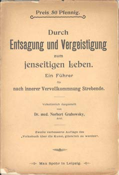 Grabowsky, Dr. med. Norbert: Durch Entsagung und Vergeistigung zum jenseitigen Leben. Ein Führer für nach innerer Vervollkommnung Strebende. Volkstümlich dargestellt. Leipzig, Max Spohr 1903. Zweite verbesserte Auflage des: “Volksbuch Über die Kunst, glücklich zu werden” [von 1887]. 41 S., VII S. OBrosch.