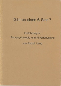 Gibt es einen 6. Sinn? Einführung in Parapsychologie und Psychohygiene. öhringen, Rudolf Lang 1976. Im Format DIN A4. 2 Bl., 26, 4, 7, 2 S., 2 Bl. (mit Diagrammen). OKart.