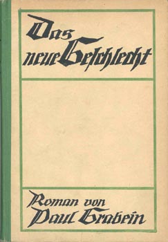 Grabein, Paul: Das neue Geschlecht. Roman. Grethlein & Co., Leipzig 1919. Siebentes bis neuntes Tausend. 274 S., 2 Bl. Vlgs.-Anz., 1 Bl. OHLwd.