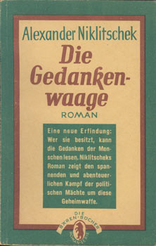 Niklitschek, Alexander: Die Gedankenwaage. Roman. Demokratische Druck- und Verlags-Gesellschaft, Linz 1950. 192 S. OKart.