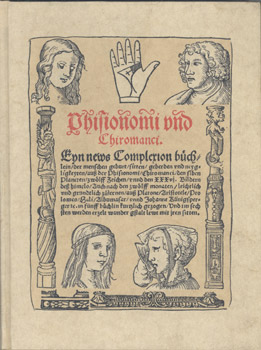 Barthelemi della Rocca (genannt Bartholomaeus Cocles): Phisionomi und Chiromanci. Eyn news Complexion büchlein/ der menschen geburt/ sitten/ geberden und neygligkeyten/ auß der Phisionomi/ Chiromanci/ den siben Planeten/ zwölff Zeichen/ vnnd den XXXvj. Bildern deß himels/ auch nach den zwölff monaten/ leichtlich und gründtlich zu lernen/ auß Platone/ Aristotele/ Prolomeo/ Bali/ Albumasar/ vnnd Johanne Künigsperger ec. in fünff büchlin kurtzlich gezogen/ Vnd im sechsten werden erzelt wunder gstalt lewt mit iren sitten. TH. Schäfer GmbH, Hannover 1980. 85 Blatt illustr. OPp.