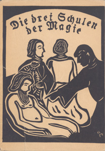 Die drei Schulen der Magie. Genossenschaft Psychosophia, Zürich/Schweiz 1956. 12°. Autorisierte Übersetzung von Marta Küntzel, Leipzig. 2 Bl., 36 S., 1 (w), 1 Bl. Vlgs.-Anz. OKart. m. illustr. OUmschl.