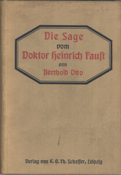 Otto, Berthold: Die Sage von Doktor Heinrich Faust. Der Jugend und dem Volke erzählt. Scheffer, Leipzig 1909. 3.Auflage (4. und 5. Tausend). 2 Bl., 300 S. gepr. OLwd.