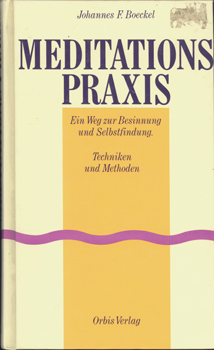 Boeckel, Johannes F.: Meditationspraxis. Ein Weg zur Besinnung und Selbstfindung. Techniken und Methoden. Orbis Verlag, München 1989. Sonderausgabe. Zeichnungen von Erika Peleska-Dietl. Redaktion: Wolfgang Bruns. 173 S., 1 (w) OPp.