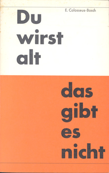 Colosseus-Bosch, E.: Du wirst alt – das gibt es nicht. Mach es so und bleibe jung. Gesundheitsbrevier für Vierzig- Neunzigjährige, Fußgänger und Motorisierte. Hermann Bauer Verlag, Freiburg im Breisgau 1959. Sechste Auflage. 153 S., 3 Bl. Vlgs.-Anz. OKarton.