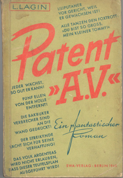 Lagin, L(asar): Patent “A.V.”. Ein phantastischer Roman. SWA-Verlag, Berlin 1947. 278 S., 1 Bl. illustr. OKarton.