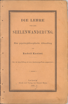 Kneisel, Rudolf: Die Lehre von der Seelenwanderung. Eine populär-philosophische Abhandlung. Druck und Verlag von Oswald Mutze, Leipzig 1889. Gr.-8°. 2 Bl., 135 S. OKarton.