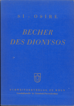 Si – Osire (Ps.) = Ignatz Schweitzer von Coellen: Becher des Dionysos. Lieder eines Trunkenen. Bekenntnis des Wiedergebornen. Schweitzerverlag zu Köln, MCMLVI (1956). 1 (w), 1 Bl., 80 S., 1 (w) goldgepr. OKarton mit OUmschlag.