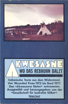 Gesellschaft für bedrohte Völker (Hrsg.): Akwesasne. Wo das Rebhuhn balzt. Indianische Texte aus dem Widerstand. Trikont Verlag, München 1978. 1. Auflage. 309 S., 1 Bl. OKarton.