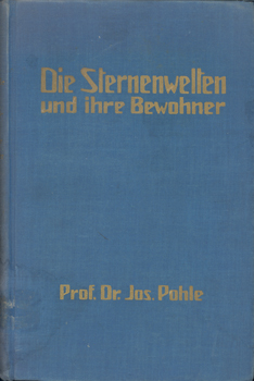 Pohle, Prof. Dr. Jos(eph): Die Sternenwelten und ihre Bewohner zugleich als erste Einführung in die moderne Astronomie. Verlag und Druck von J. P. Bachem, Köln 1922. 7. Aufl. 9. bis 11. Tausend. Mit 1 [Falt] Karte, 6 Tafeln und 60 Abbildungen im Text. XII, 453 S., 1 Bl. Olwd. mit Goldprägung.