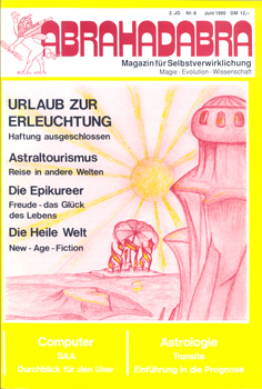 Abrahadabra. Magazin für Selbstverwirklichung. Magie – Evolution – Wissenschaft. (2. J.G., Nr. 6 Juni 1990). Peyn und Schulze Verlag, Bergen/Dumme 1990. 4°. Mit zahlreichen Textabbildungen. 84 S. farbig illustr. OBroschur.