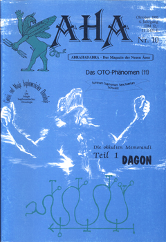 AHA. Abrahadabra – Das Magazin des Neuen Äons. (Oktober 1991. 4. Jahrgang, Nr. 10). Peyn und Schulze Verlag, Bergen/Dumme 1991. 4°. Mit zahlreichen Textabbildungen. 80 S. farbig illustr. OBroschur.