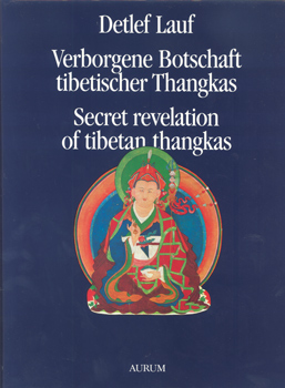 Lauf, Detlef-Ingo: Verborgene Botschaft tibetischer Thangkas. Bildmeditation und Deutung lamaistischer Kultbilder. / Secret Revelation of Tibetan Thangkas. Picture Meditation and Interpretation of Lamaist Cult Paintings. Aurum Verlag, Braunschweig 1991. 4°. 2. Auflage. Mit 60 Bildtafeln [davon 14 in Farbe], sowie einigen Textvignetten. 168 S., 1 Bl. OPp. mit OUmschlag.
