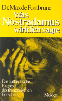 Fontbrune, Dr. Max de: Was Nostradamus wirklich sagte. Die authentische Exegese des französischen Forschers. Verlag Fritz Molden, Wien-München-Zürich-New York 1981. 1. Auflage. Aus dem Französischen übertragen von Doris Plank. 335 S. OKarton.