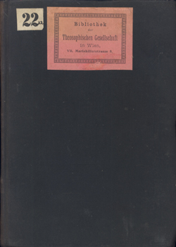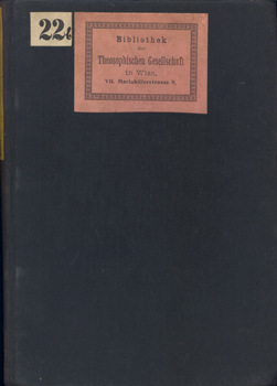 Exemplare aus der Bibliothek der Theosophischen Gesellschaft in Wien, eingebunden in die üblichen sehr stabilen u. robusten schwarzen Leineneinbände mit Dck.– u. Rck.– Schild(ern). – Einbände leicht berieben, bestoßen. Die OBroschur im 2. Bd. eingebunden.