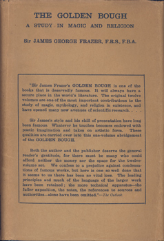 Frazer, Sir James George [F.R.S., F.B.A.] The Golden Bough. A Study in Magic and Religion. MacMillan and Co., London 1929. Gr.-8°. Sixth Impression. Abridged Edition. [1 Frontispiece], xiv, 756 S., 2 Bl. Vlgs.-Anz. OLwd. mit Rückengoldprägung, Kopfgoldschnitt u. OUmschlag.