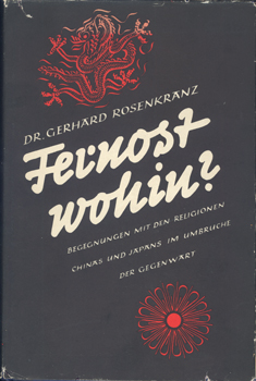 Rosenkranz, Dr. Gerhard: Fernost – wohin? Begegnungen mit den Religionen Japans und Chinas im Umbruch der Gegenwart. Eugen Salzer, Heilbronn 1940. Gr.-8°. Mit 38 Abbildungen. 1 Bl., 304 S., 2 Bl. Vlgs.-Anz. OLwd. m. OUmschlag.