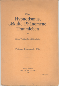 Pilcz, Alexander: Über Hypnotismus, okkulte Phänomene, Traumleben. Sieben Vorträge für gebildete Laien. Franz Deuticke, Leipzig und Wien 1926. 4°. 2 Bl., 90 S. 1 Bl. (beigelegte Werbung) OKarton.