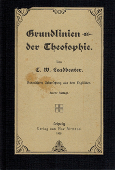 Grundlinien der Theosophie. Max Altmann, Leipzig 1909. Zweite Auflage. Autorisierte Übersetzung aus dem Englischen. VII, 69 S., 1 Bl. Vlgs.-Anz. neuer Lwd. m. aufgezogenem OUmschlag.