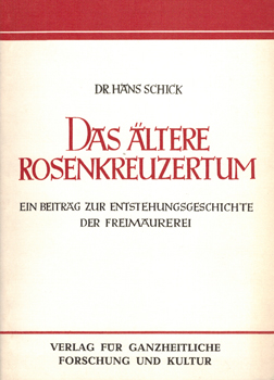 Schick, Hans: Das ältere Rosenkreuzertum. Ein Beitrag zur Entstehungsgeschichte der Freimaurerei. Verlag für ganzheitliche Forschung und Kultur, Struckum o.J. [um 1980]. 338 S., 1 (w) OKarton.