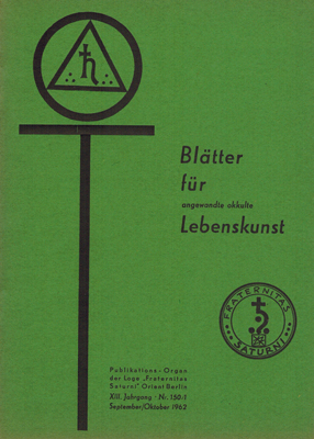 Gregor A. Gregorius (Hrsg.) d.i.: Otto Max Eugen Grosche: Blätter für angewandte okkulte Lebenskunst. XIII. Jahrgang, Nr. 150/151. Herausgegeben (als Privatdruck) von Gregor A. Gregorius. Meister der Loge Fraternitas Saturni Orient Berlin, Berlin 1962. 8°. S. 95-118. OKarton.