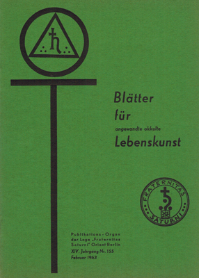 Blätter für angewandte okkulte Lebenskunst. XIV. Jahrgang, Nr. 155. Herausgegeben (als Privatdruck) von Gregor A. Gregorius. Meister der Loge Fraternitas Saturni Orient Berlin, Berlin 1963. 8°. S. 17-32. OKarton.