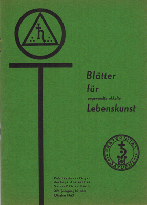 Blätter für angewandte okkulte Lebenskunst. XIV. Jahrgang, Nr. 163. Herausgegeben (als Privatdruck) von Gregor A. Gregorius. Meister der Loge Fraternitas Saturni Orient Berlin, Berlin 1963. 8°. S. 147-162. OKarton.